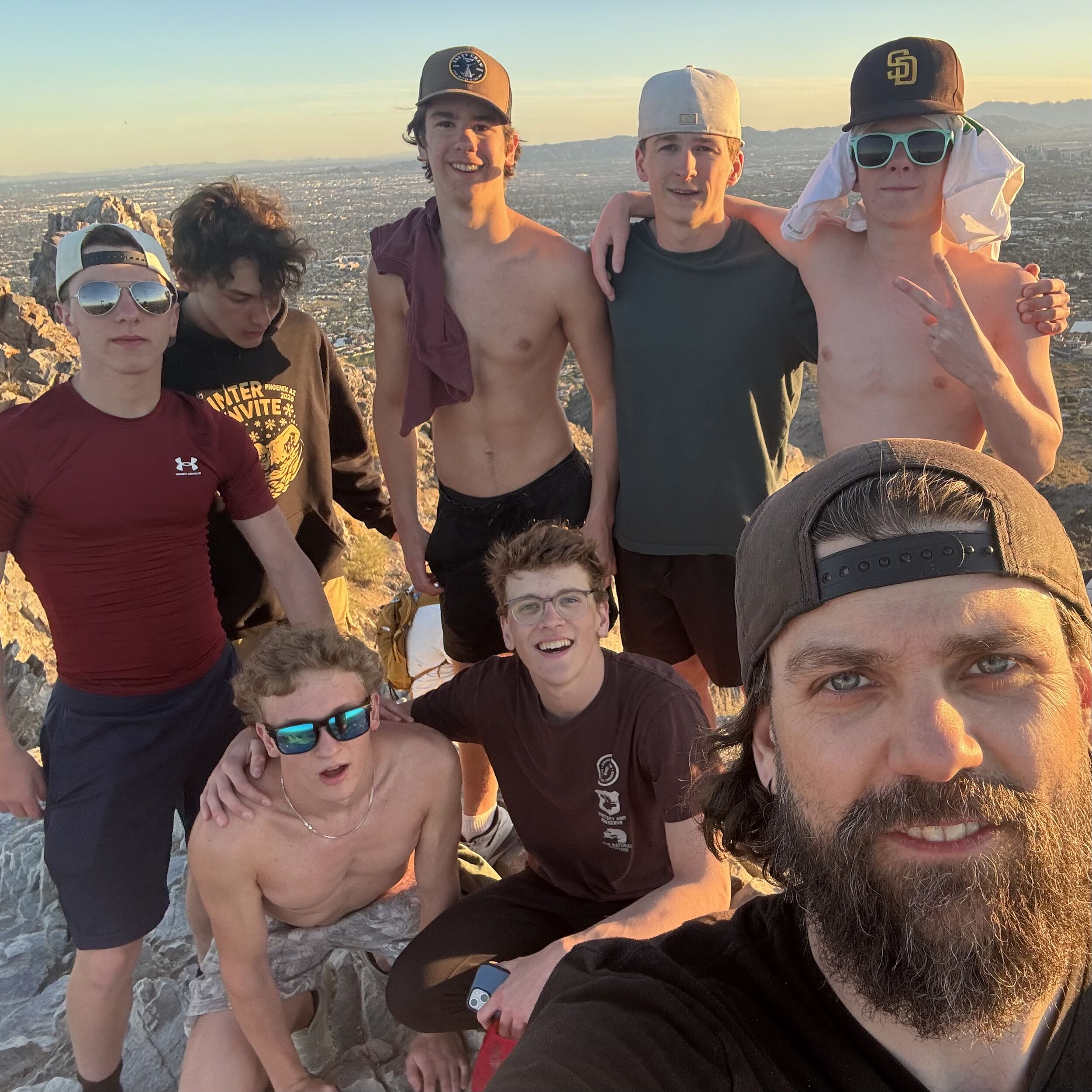 Camp Debrief: Thursday afternoon (our last full day) after practice we all assembled in the great room (at our awesome Rental house) and did our TEAM camp debrief. We reviewed the camp goals, and all our wins, we went around the group and shared our favorite part of the camp as well as what we are most looking forward to for the rest of the season. We then presented our classic, much anticipated 'FUN AWARDS' along with a gift of an ASU (Arizona State University) lanyard to attach to their swim bag, to remember all the great times;) We then went and climbed a mountain...seriously...we hiked Squaw Peak, and yes, it was EPIC!!!