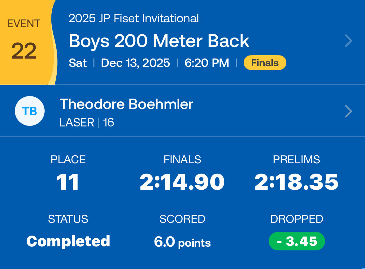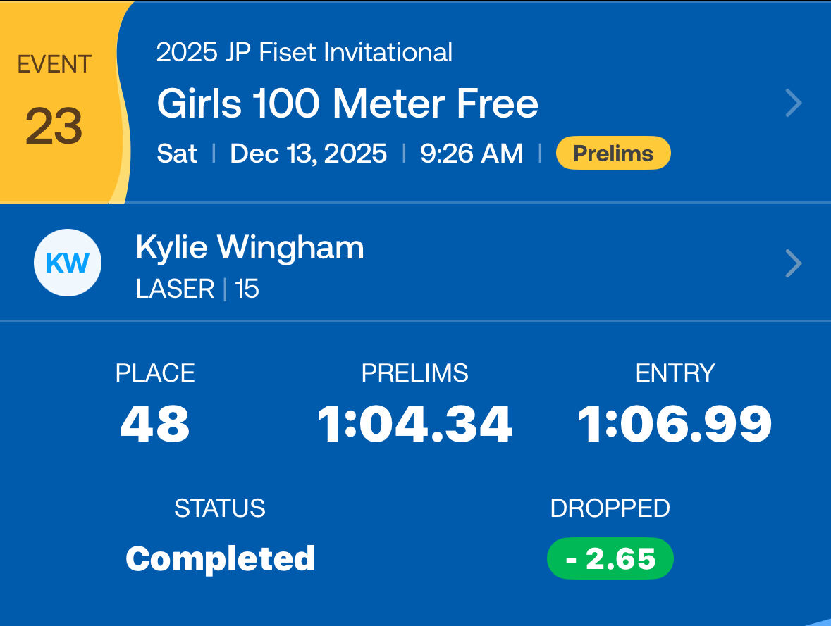 (This was a fun debrief between Coach Ryan and Coach Chris regarding our favorite swims of the session. Most sessions were filled with many great swims, big best times, qualifying swims etc. and everyone should be very proud of their efforts and accomplishments but there were a few big swims that stood out that we wanted to highlight for everyone)
