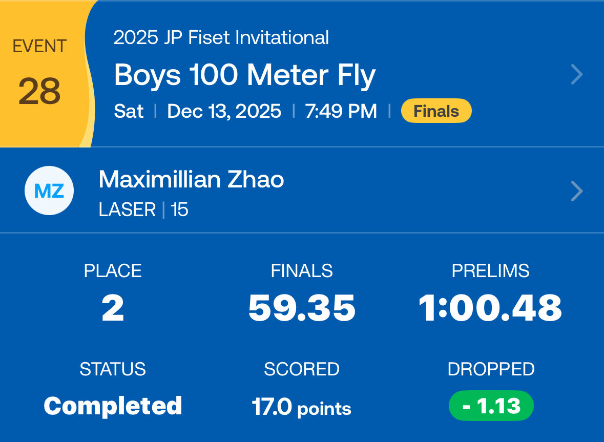 Max 100FL Best Time, Breaking the 1min Barrier & SILVER medal!