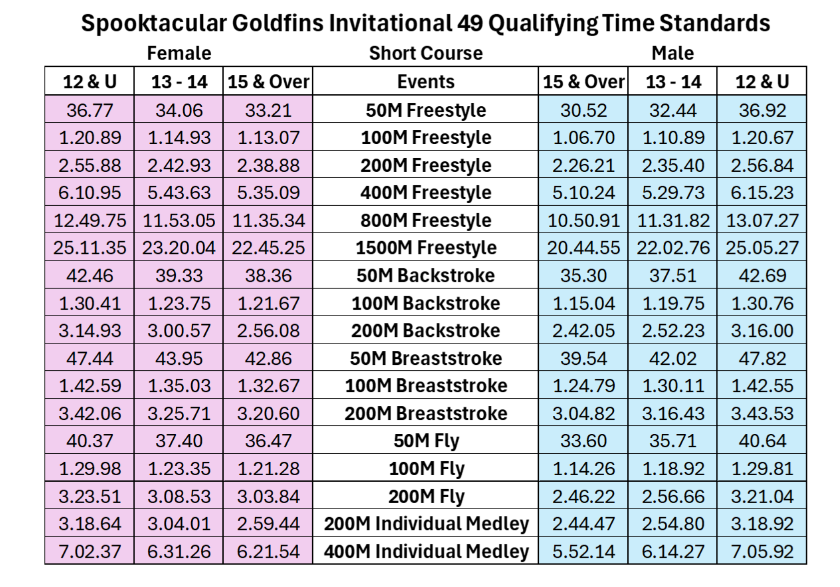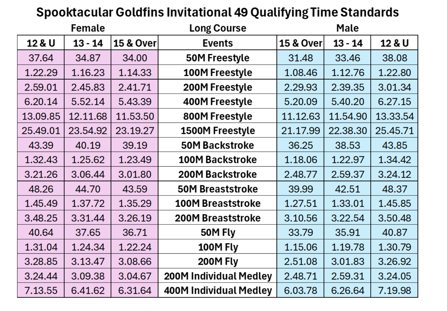 Yes Qualifying Times Required - Please see below.